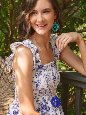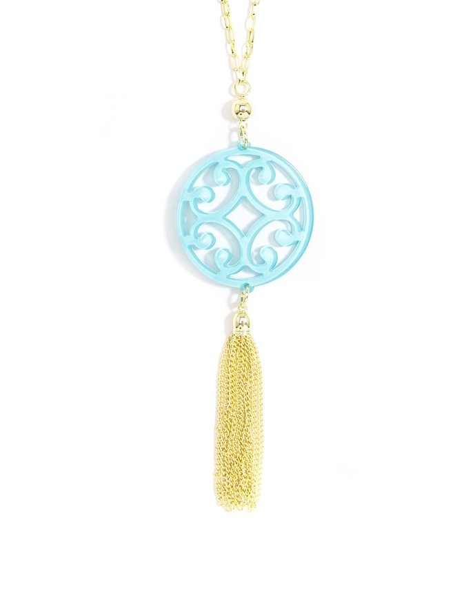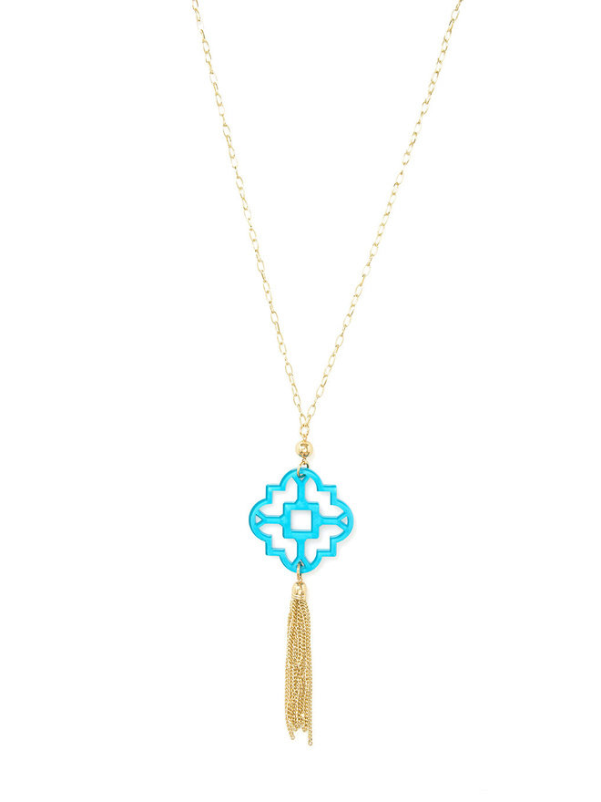 Quatrefoil Cutout Resin Pendant Adjustable Long Necklace