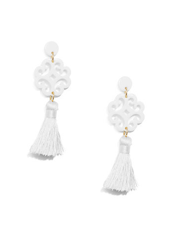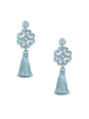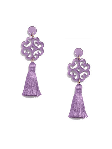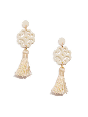 Drop earring composed of a circular wave pendant and tassel drop. This style is completed with a signature post back.