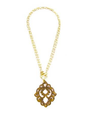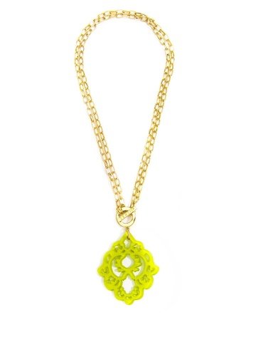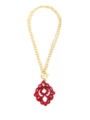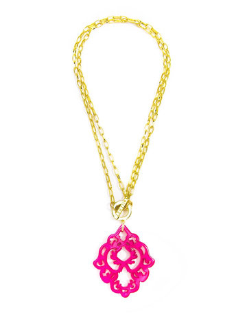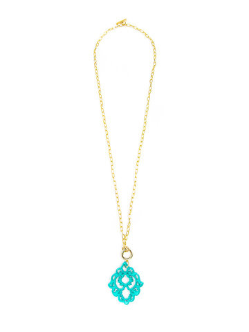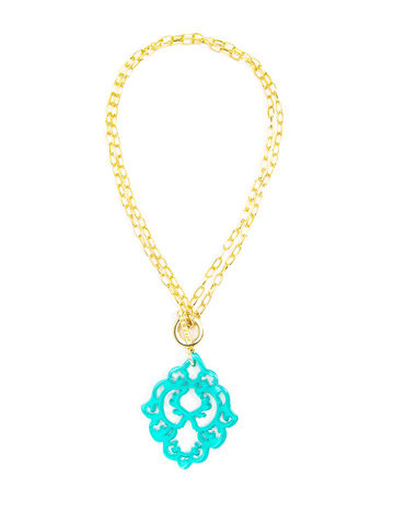 Eyes up here! This pendant is sure to bring a punch of color and vivacity to any outfit.