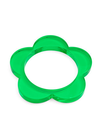 Bangle bracelet made from premium grade lucite in a flower shape.
