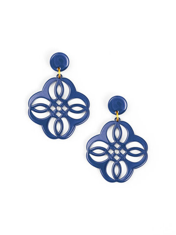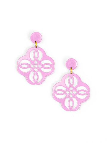 Drop earring featuring a vibrant resin cutout pendant in a mandala-inspired shape.