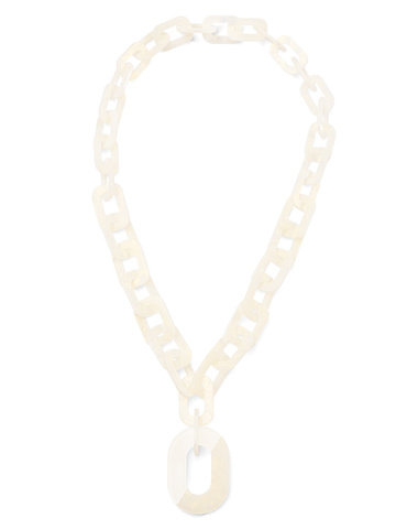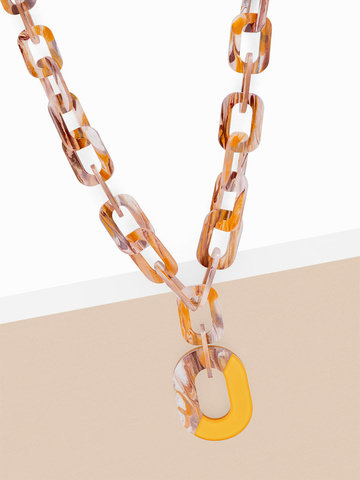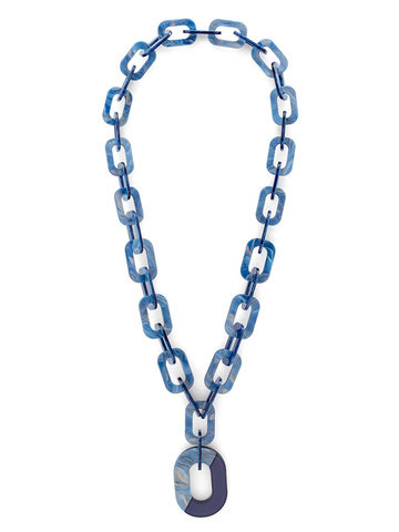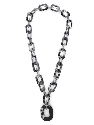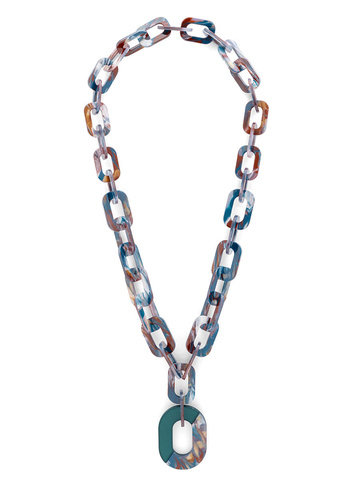 Long link necklace made from resin and embellished with a duotone pendant in a half marble/half solid colorway.