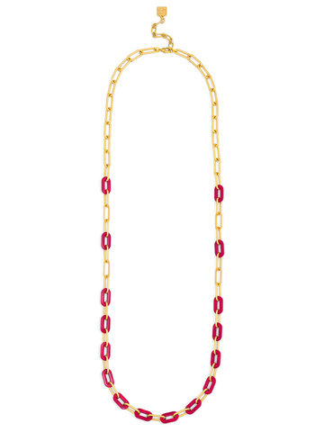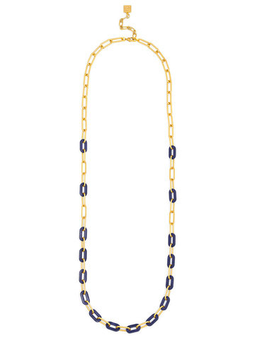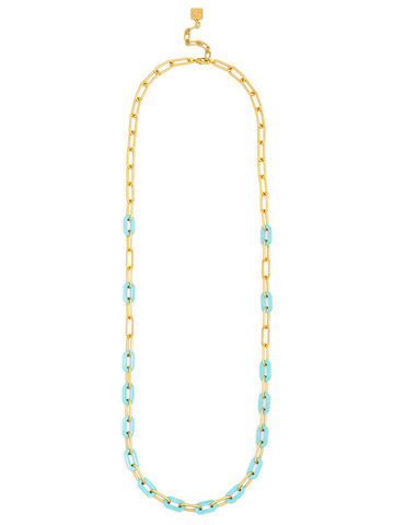 Long necklace featuring alternating paperclip and marbled resin links.