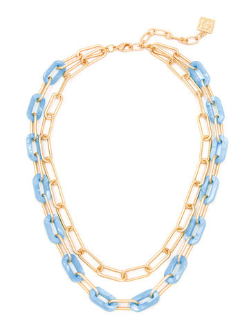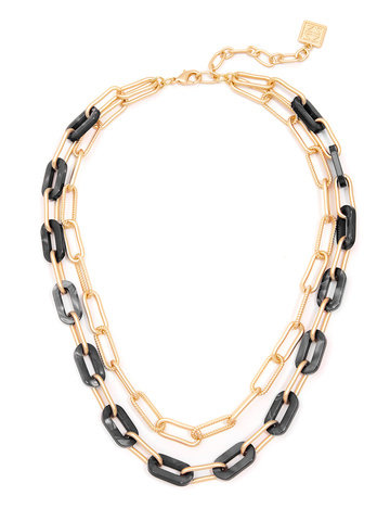 18K gold-plated layered necklace composed of marbled resin and metal paperclip links finished with a lobster claw closure.