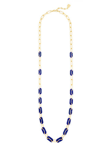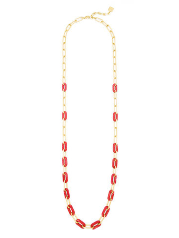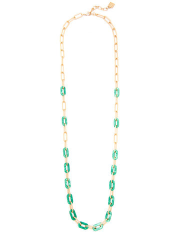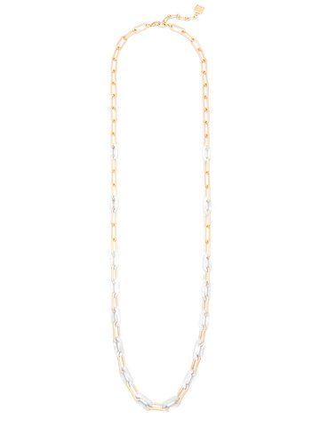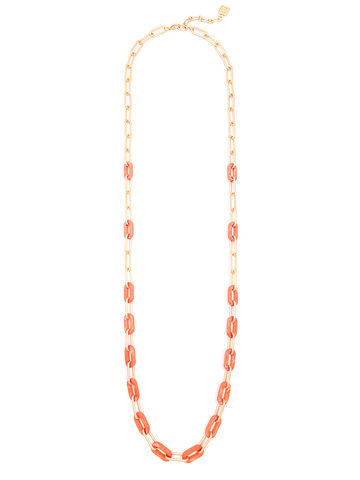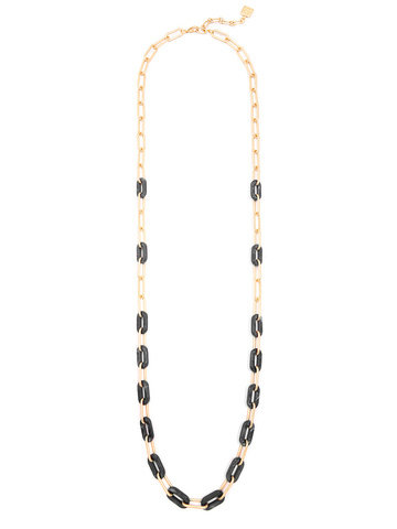 18K gold-plated long necklace composed of marbled resin and metal paperclip links finished with a lobster claw closure.