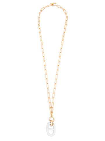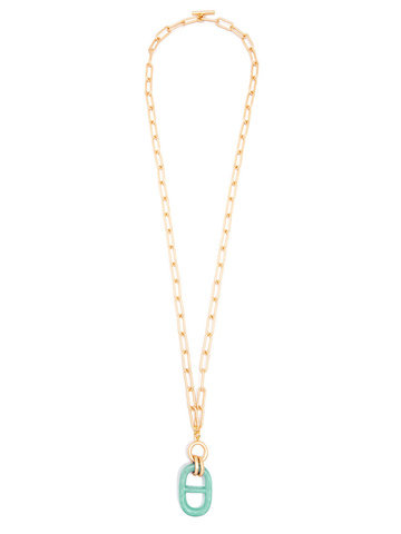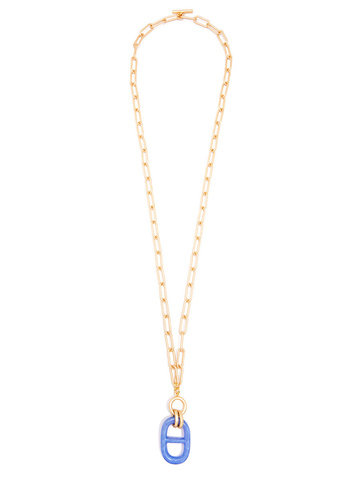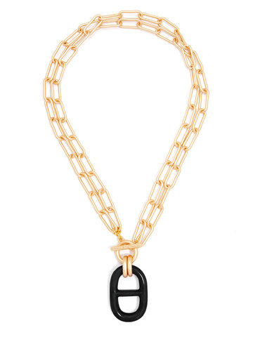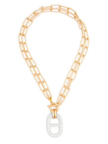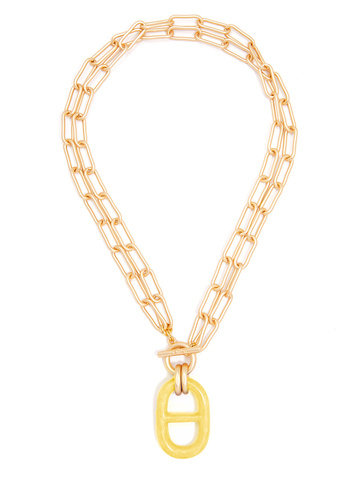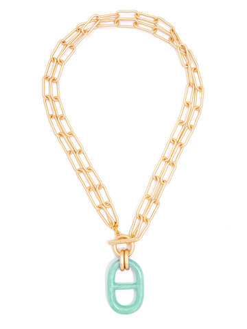 Matte gold link necklace embellished with a resin charm. This style can be worn long or short.