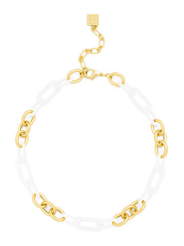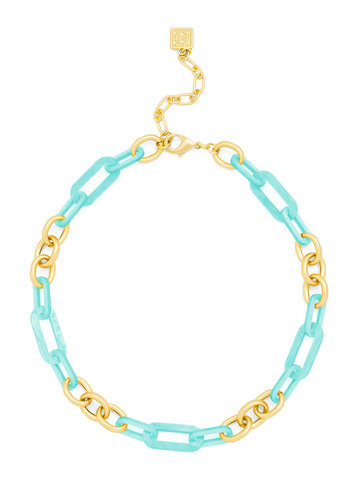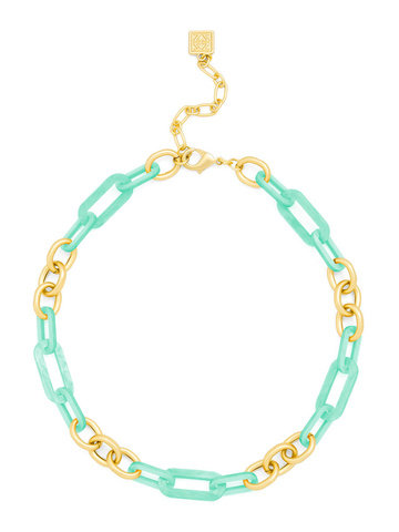 Collar necklace made with alternating colorful resin and 18K gold-plated links.