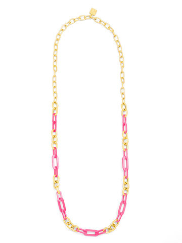 Long necklace made with alternating colorful resin and 18K gold-plated links.