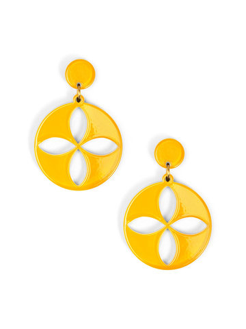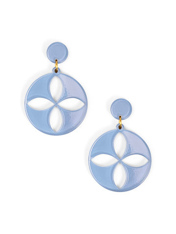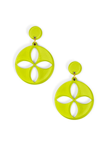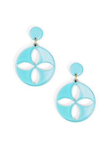 Resin drop earring featuring a unique quatrefoil cutout design.
