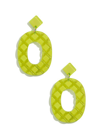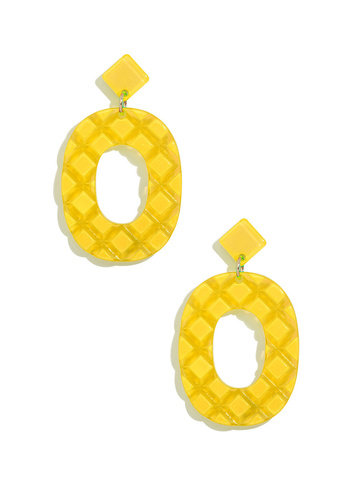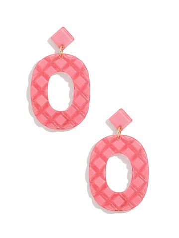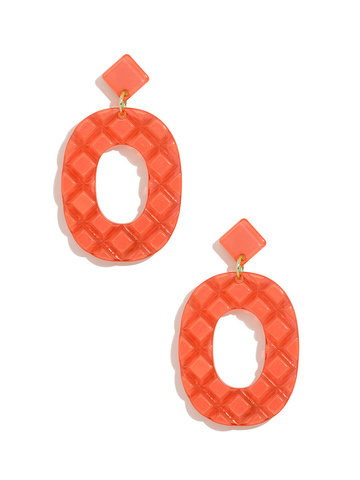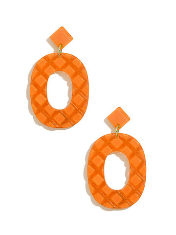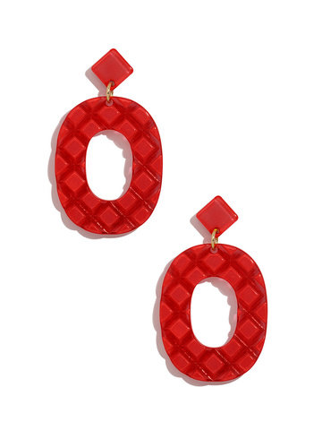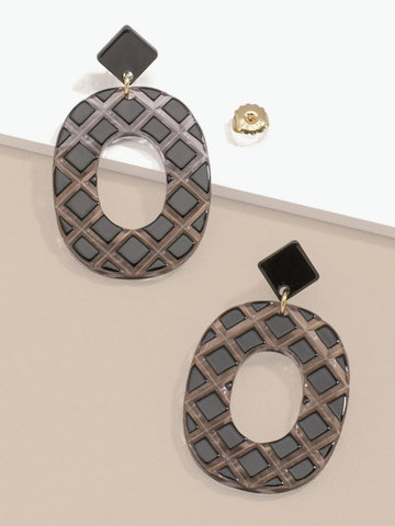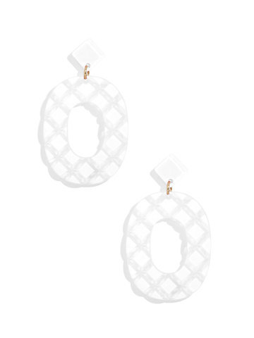 Resin drop earring in a quilted pattern.
