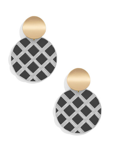 Resin drop earring in a quilted pattern with 18K gold-plated accent.