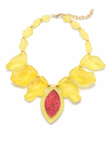 Hit the ground running with this organic rock trendy necklace with different size stones and a shining middle stone.