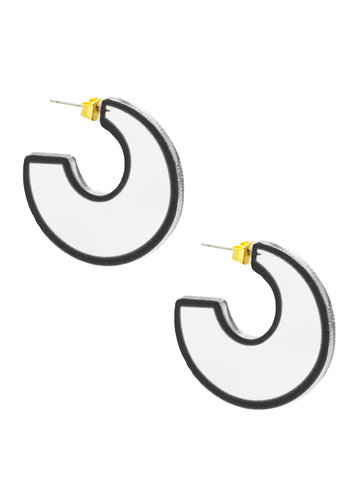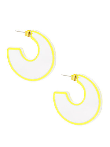 Resin open hoop earring outlined with color.