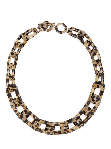 Collar necklace made from resin links in a leopard print with a toggle closure.