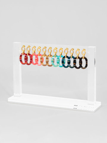A2D: Set contains 12 pieces, you get 2 quantities of all colors, comes with a small one tier earring rack.