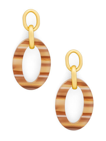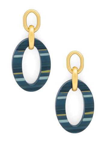 Ellipse shape drop earring made from resin in a striped color pattern.