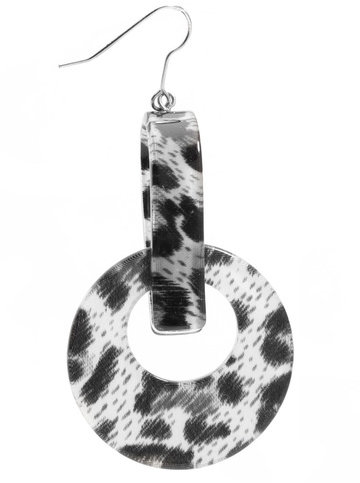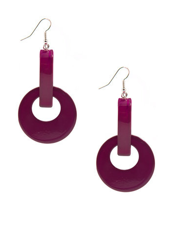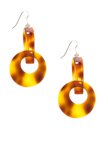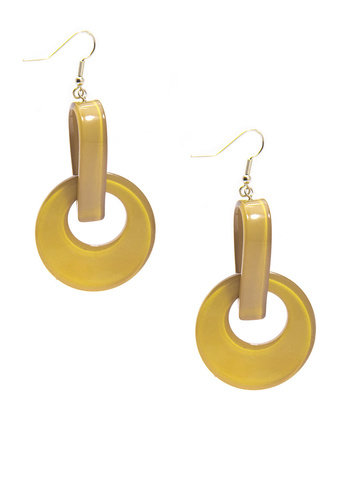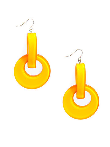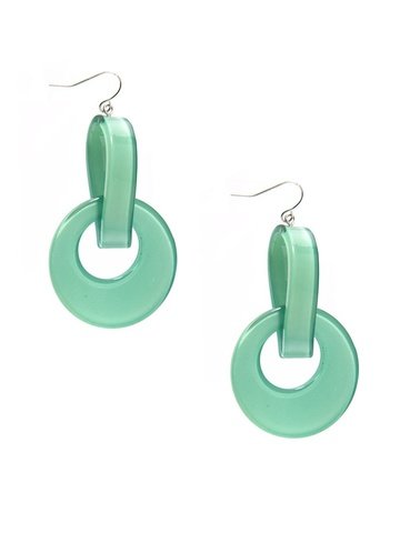 Linked Mod-style resin drop earring shaped as round door-knockers.