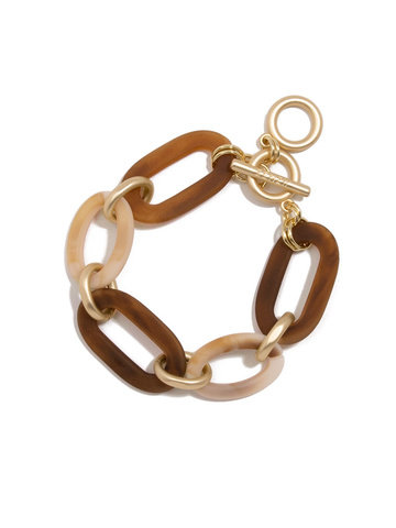 Bracelet designed with cloudy two-tone resin links and metal-plated oval links and completed with a toggle closure.