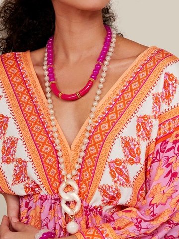 Baroque Resin Pendant Necklace with Tassel