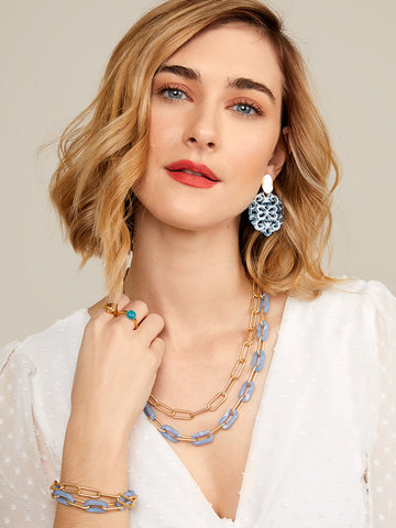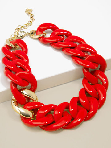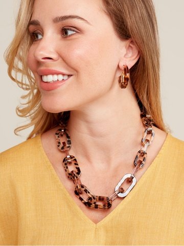 Collar necklace made from resin links in a leopard print with a toggle closure.