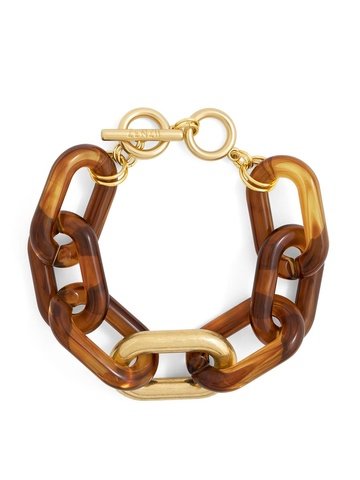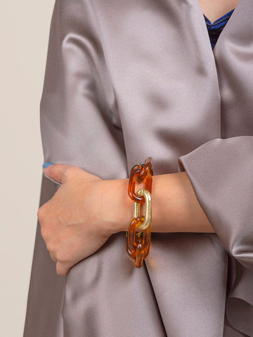 Chunky toggle bracelet featuring tortoise patterned links with a single 18K burnished gold link.