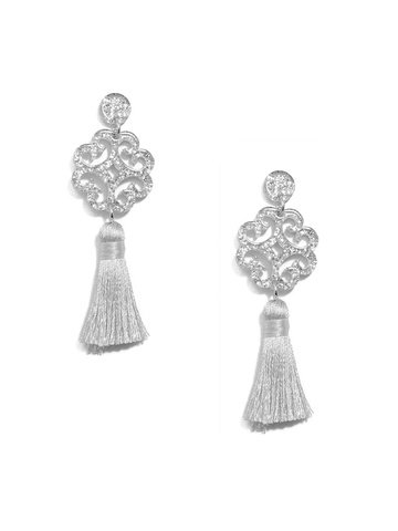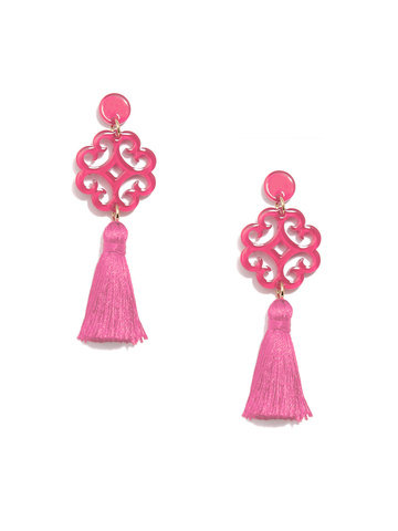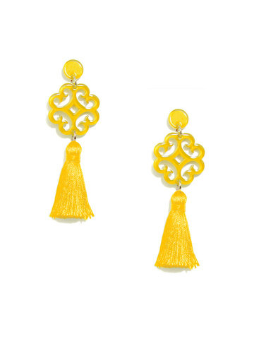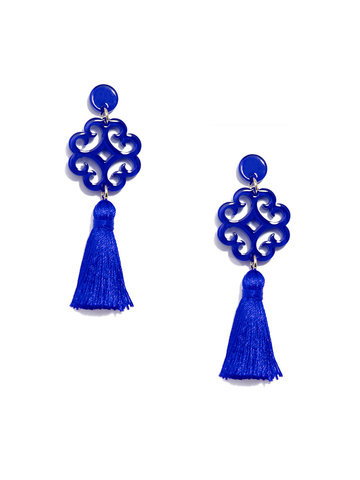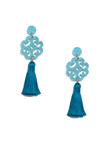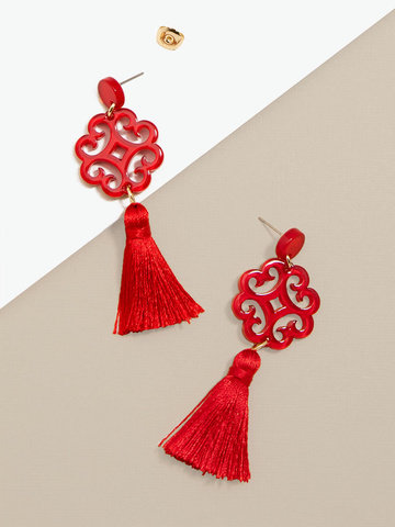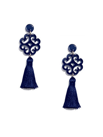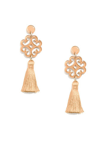 Drop earring composed of a circular wave pendant and tassel drop. This style is completed with a signature post back.