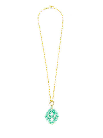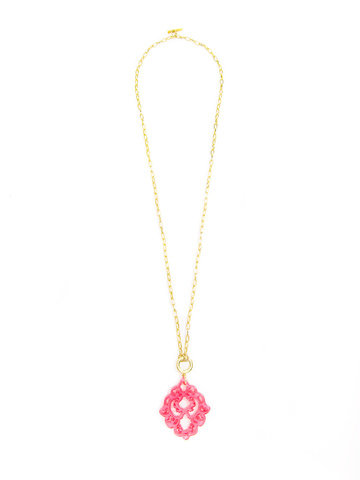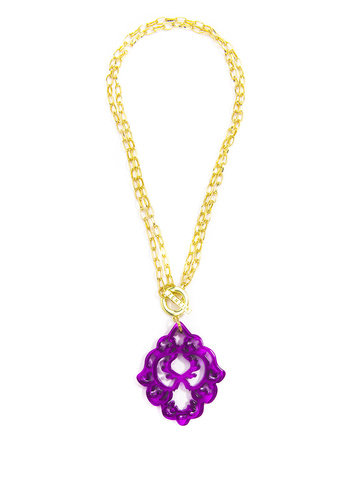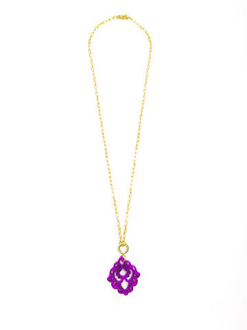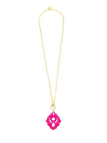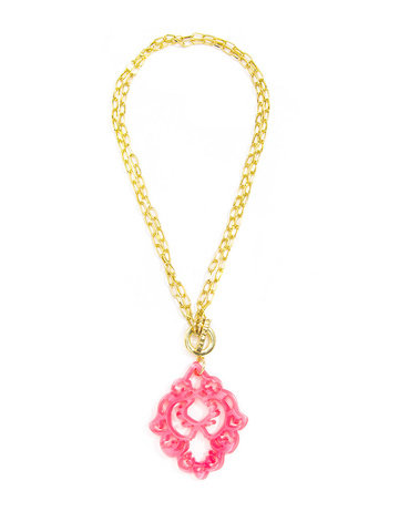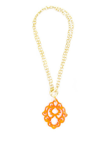 Eyes up here! This pendant is sure to bring a punch of color and vivacity to any outfit.
