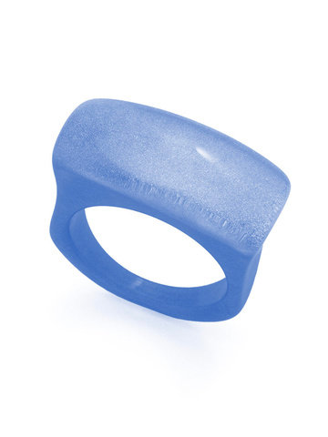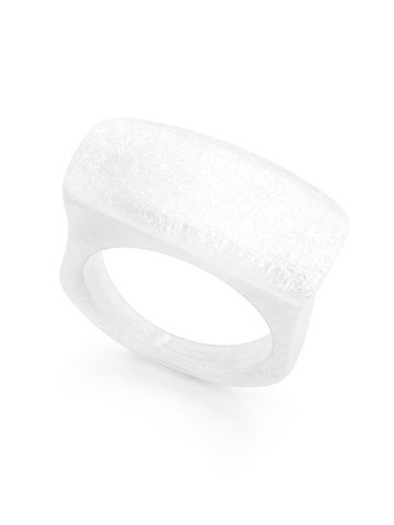 Square pebble shaped ring made from glistening resin and lucite.