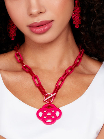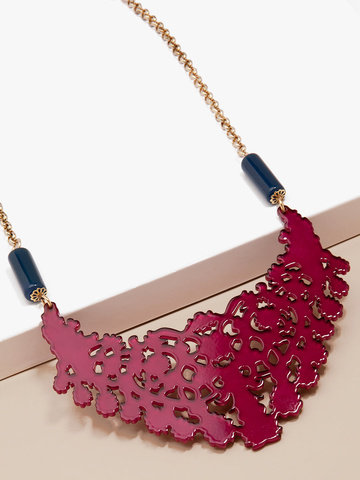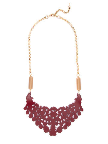 Classic lace takes a twist with this laser cut resin bib necklace in a variety of colors.