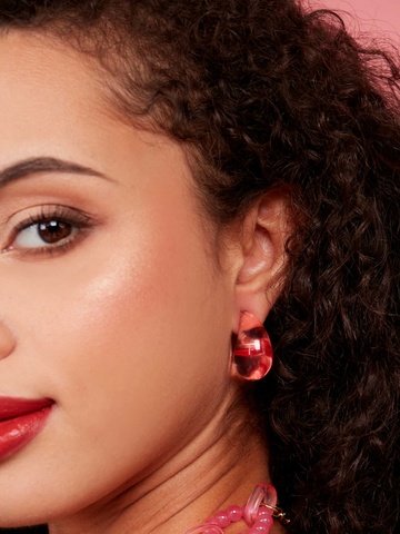 Lucite Chunky Crescent Drop Earring Lucite drop earring in a chunky crescent shape.