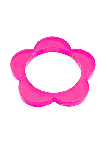 Bangle bracelet made from premium grade lucite in a flower shape.