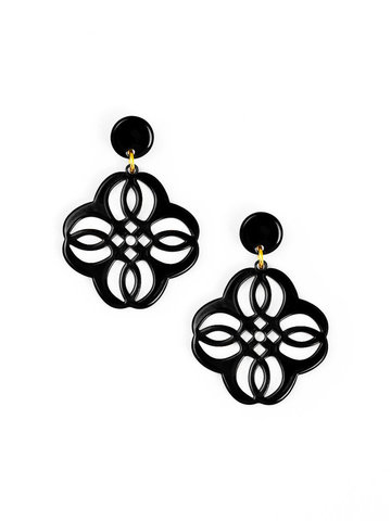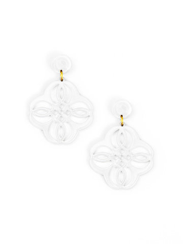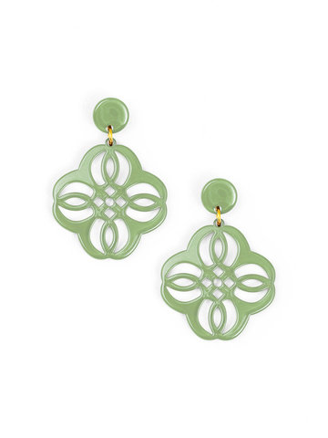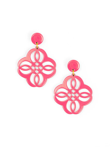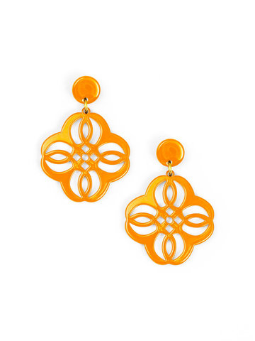 Drop earring featuring a vibrant resin cutout pendant in a mandala-inspired shape.