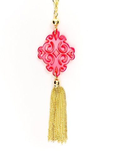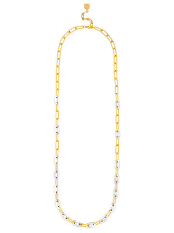 Long necklace featuring alternating paperclip and marbled resin links.