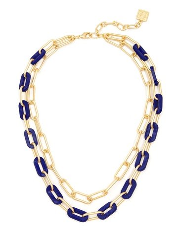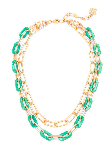 18K gold-plated layered necklace composed of marbled resin and metal paperclip links finished with a lobster claw closure.