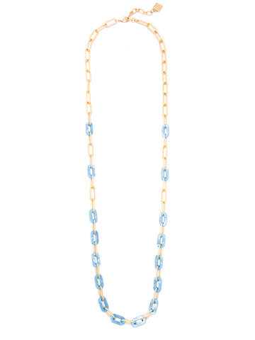18K gold-plated long necklace composed of marbled resin and metal paperclip links finished with a lobster claw closure.