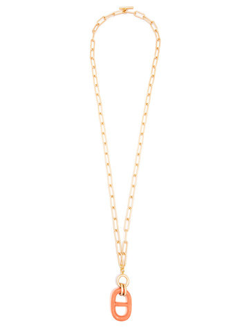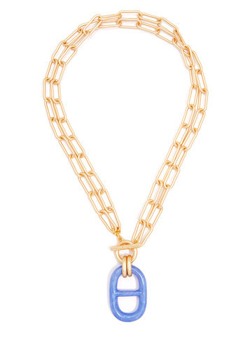 Matte gold link necklace embellished with a resin charm. This style can be worn long or short.