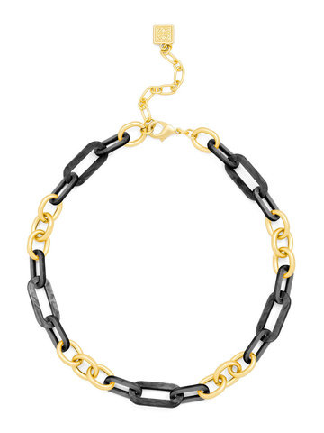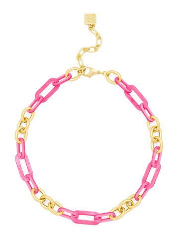 Collar necklace made with alternating colorful resin and 18K gold-plated links.