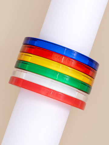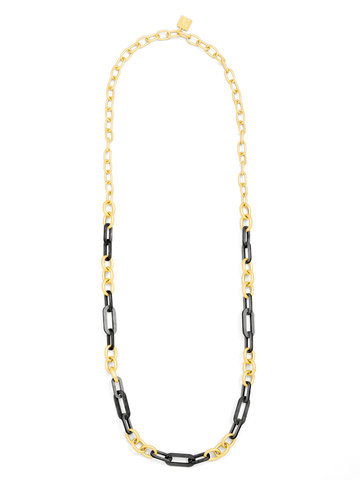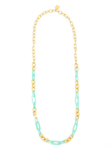 Long necklace made with alternating colorful resin and 18K gold-plated links.