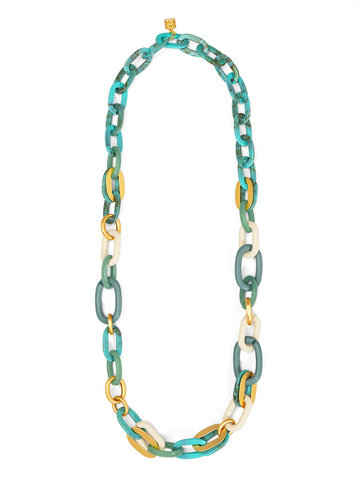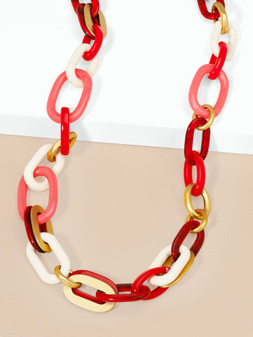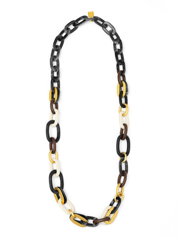 Mixed link long necklace combines bold color and classic style with its large, interlocking chain links in fall and neutral hues and gold embellishments.