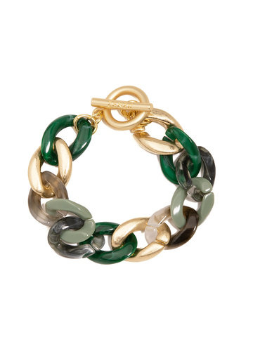 Curb chain bracelet composed of resin-based links and finished with a toggle closure.