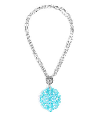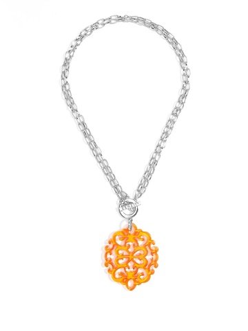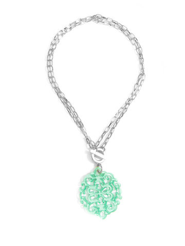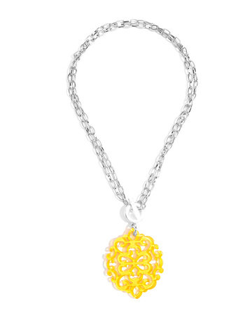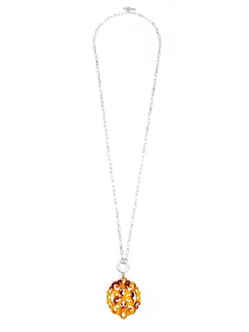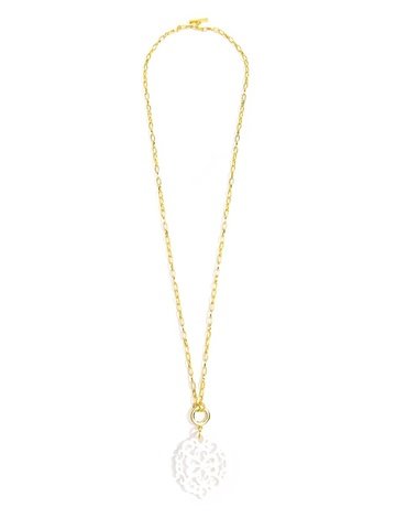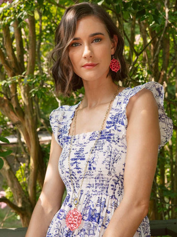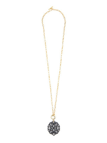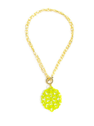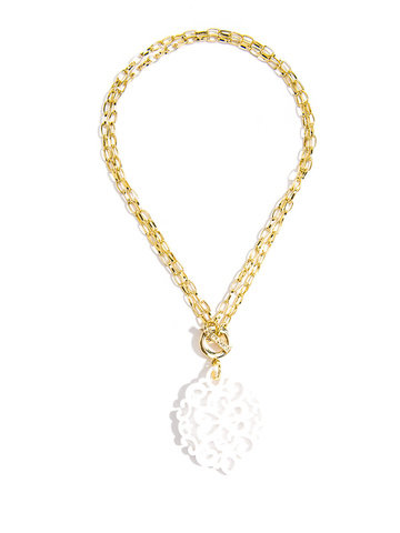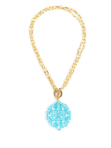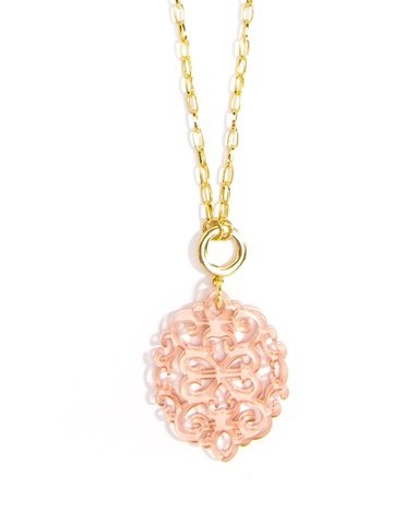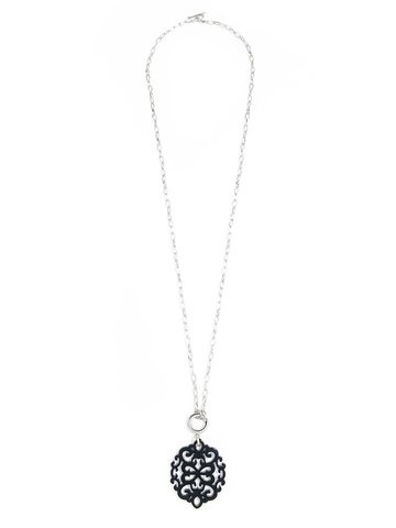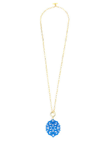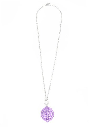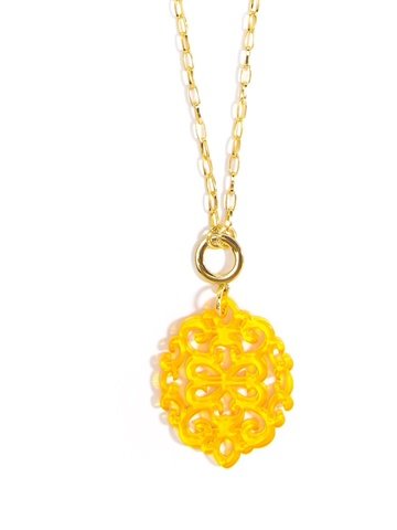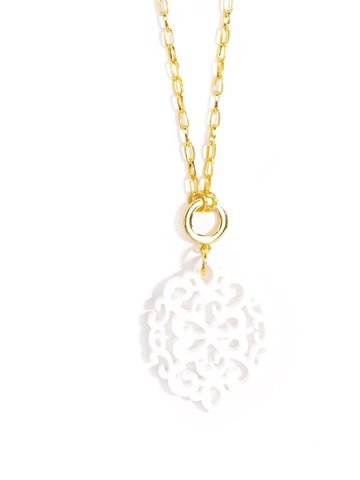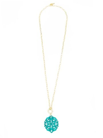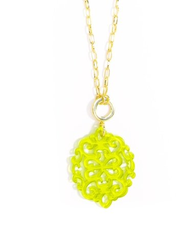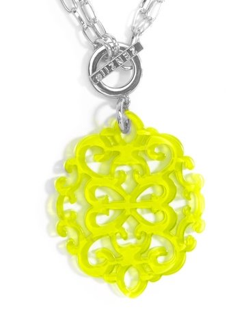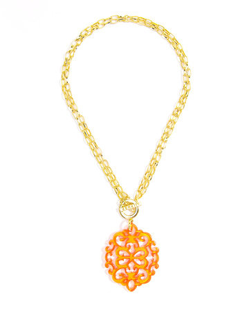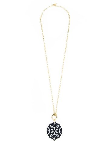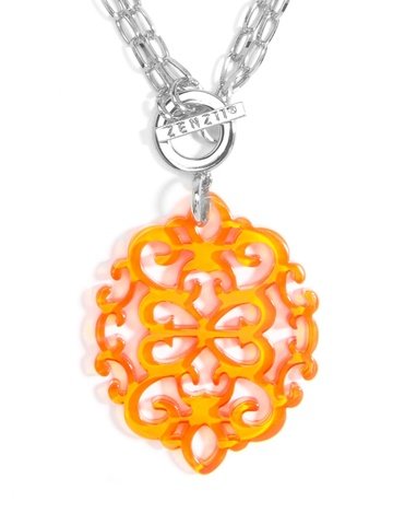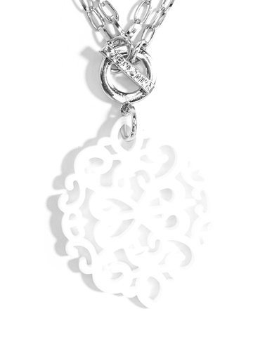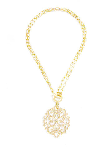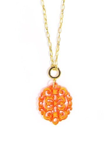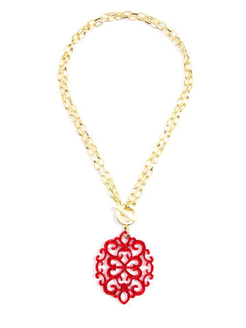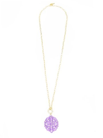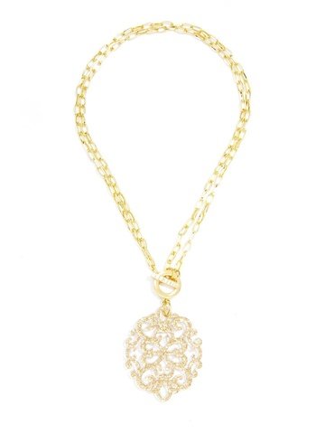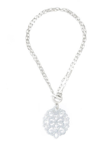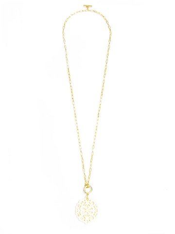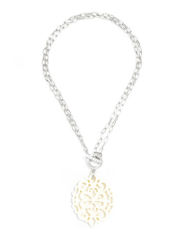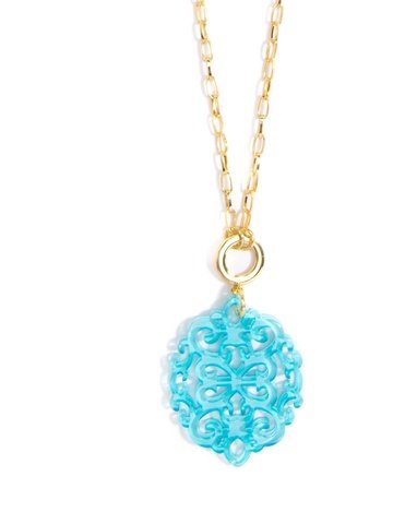 A modern twist on a classic pattern, this damask pendant necklace comes in a variety of colors and has a toggle clasp so you can wear it long or short!