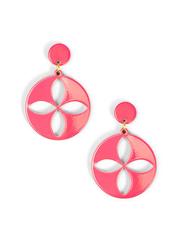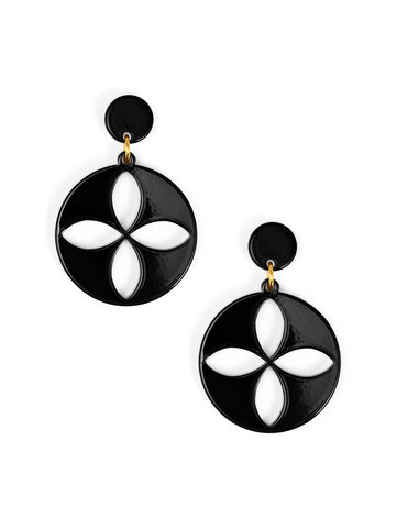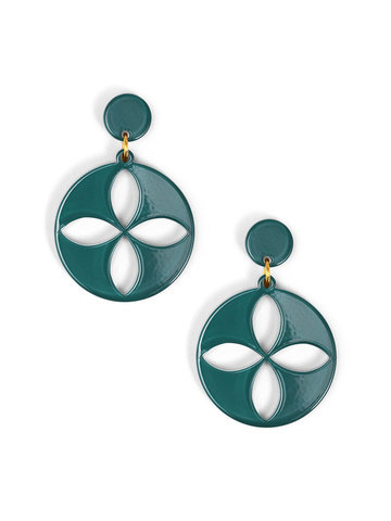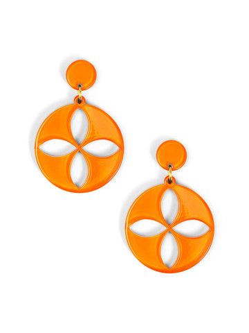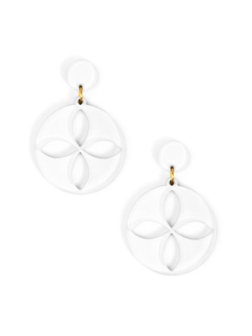 Resin drop earring featuring a unique quatrefoil cutout design.