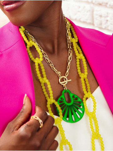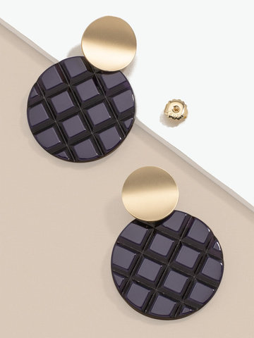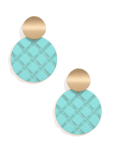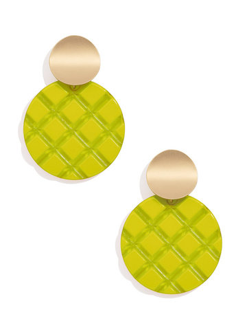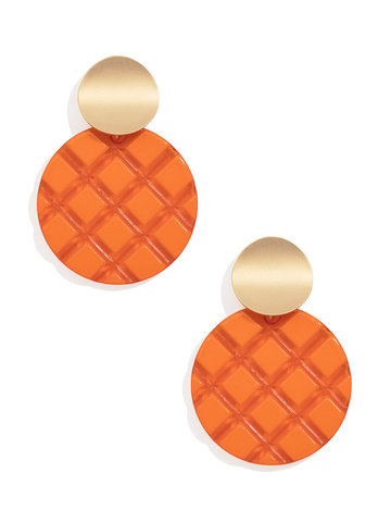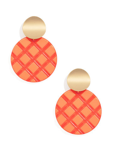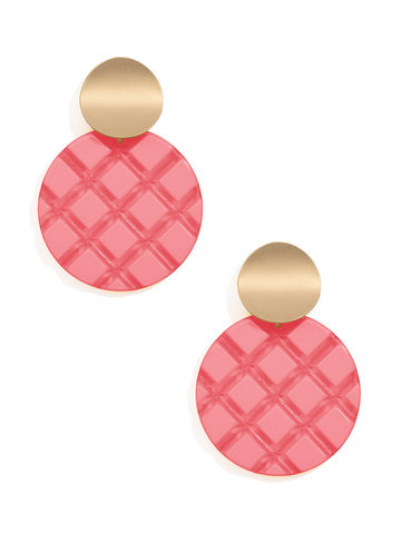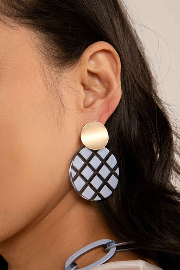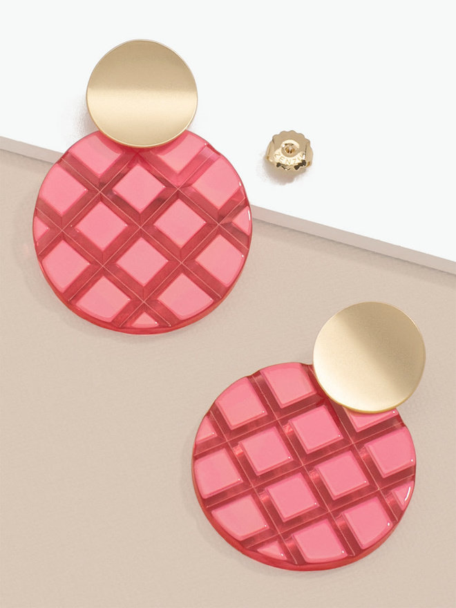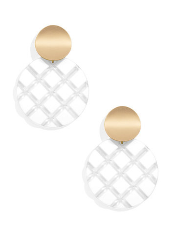 Resin drop earring in a quilted pattern with 18K gold-plated accent.