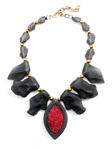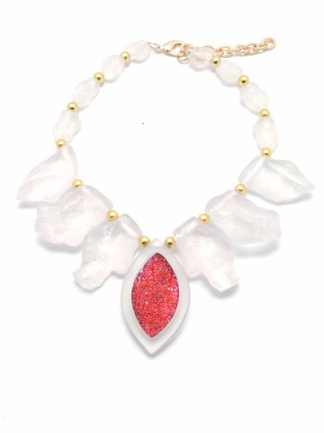 Hit the ground running with this organic rock trendy necklace with different size stones and a shining middle stone.