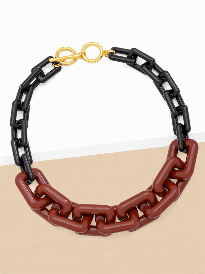 Chunky mixed link collar necklace made from resin with a toggle closure.
