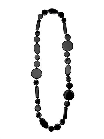 Long, resin necklace with beaded geometric shapes in a glossy finish.