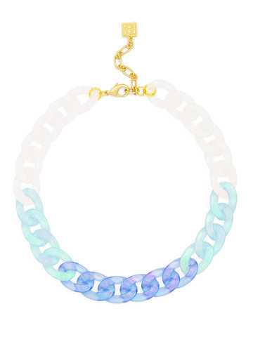 Curb chain collar necklace made from resin links in a mixed colorway.