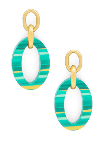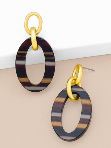 Ellipse shape drop earring made from resin in a striped color pattern.