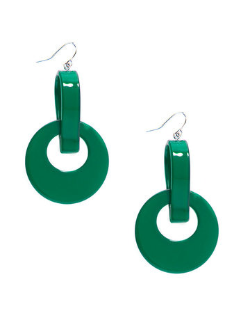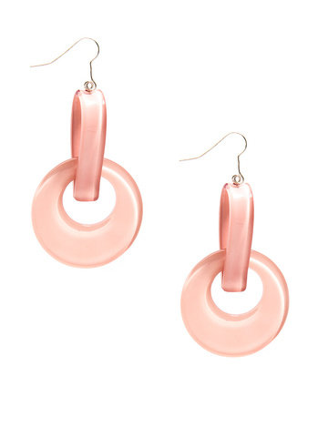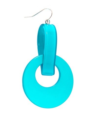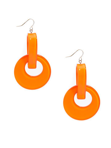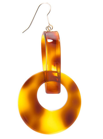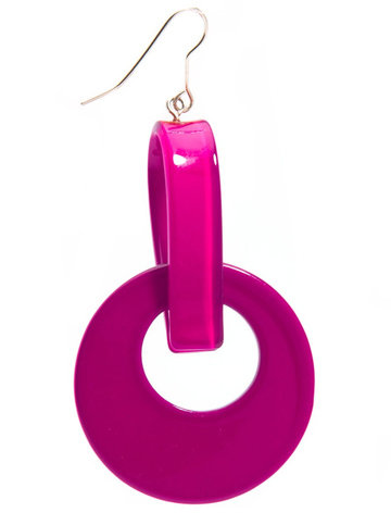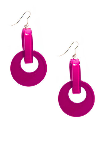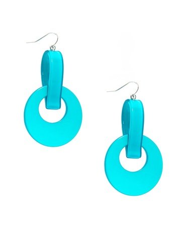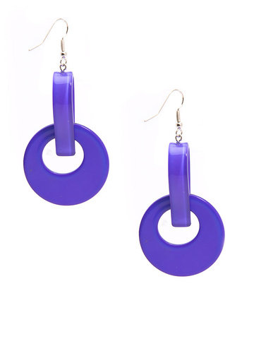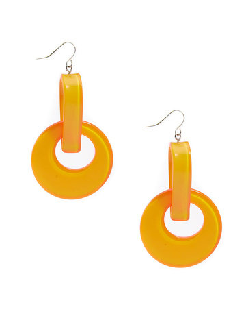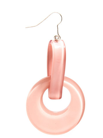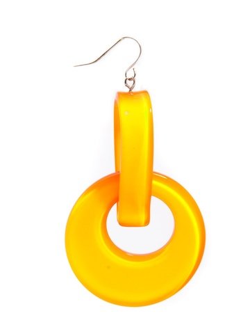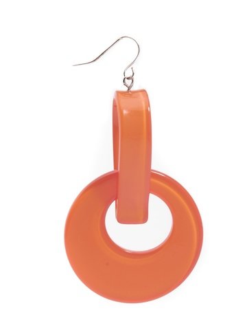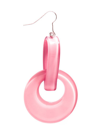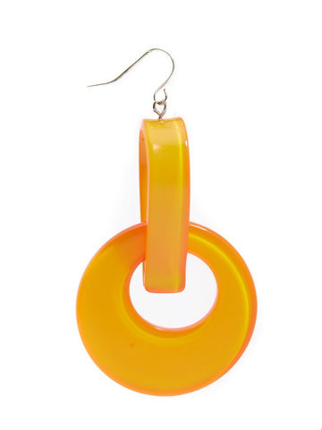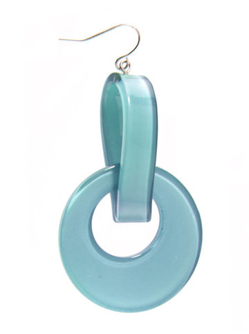 Linked Mod-style resin drop earring shaped as round door-knockers.