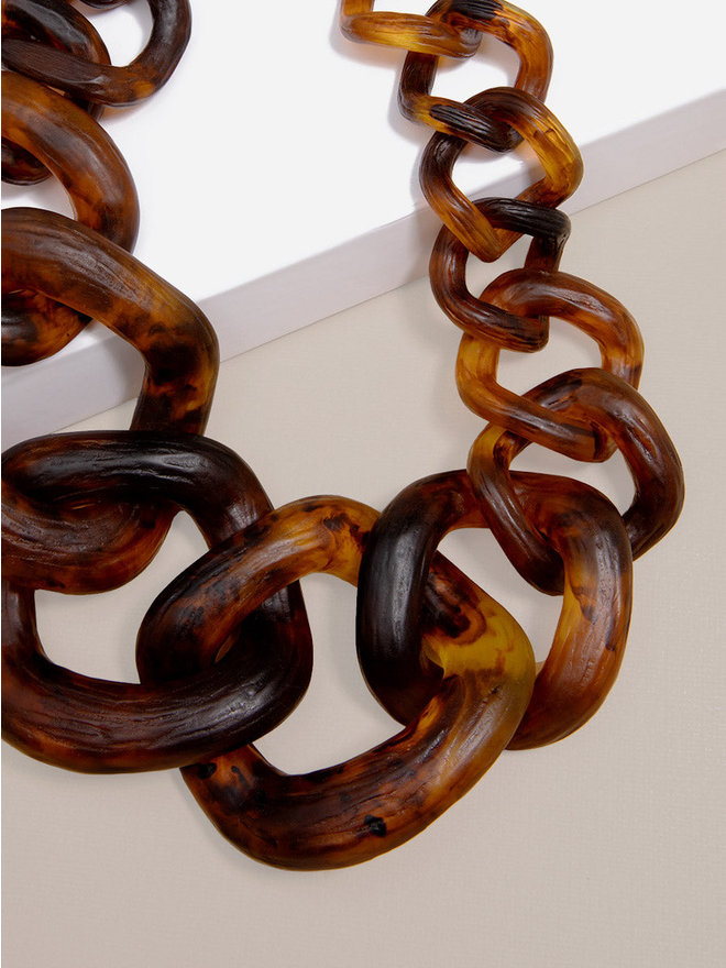 Chunky collar necklace composed of textured matte resin links. This curb chain necklace is completed with our signature 18k gold plated metal toggle closure.